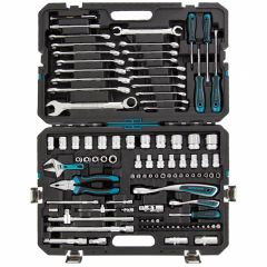 Набор инструментов Gross 14151, 1/4 и 1/2 дюйма, CrV, включает 101 предмет, в том числе ключи-трещотки со 120 зубьями, и предназначен для работы в гараже, а также домашнего ремонта. В комплекте инструменты для монтажа и демонтажа резьбовых соединений, а также зажим с фиксатором и пассатижи, использующиеся для захвата и удержания плоских деталей. Воротки, удлинители и карданные шарниры облегчают манипуляции в стесненных условиях. Для хранения и транспортировки предусмотрен кейс из ударопрочного пластика с надежными металлическими замками.