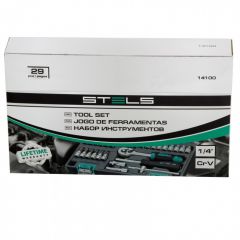 Набор инструментов Stels 14100 в пластиковом кейсе включает в себя 29 предметов с хвостовиком 1/4 дюйма из стали марки CrV. Он применяется для монтажа и демонтажа резьбовых соединений при обслуживании и ремонте авто, а также при выполнении бытовых задач. Инструменты пригодятся автолюбителям и домашним мастерам.