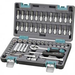 Набор инструментов Stels 14101 в пластиковом кейсе включает в себя 57 предметов с хвостовиком 1/4 дюйма из стали марки CrV. Он применяется для монтажа и демонтажа резьбовых соединений при обслуживании и ремонте авто, а также при выполнении бытовых задач. Инструменты пригодятся автолюбителям и домашним мастерам.