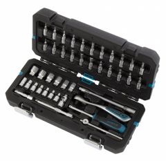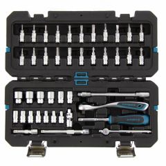 Набор инструментов Gross 14146, 1/4 дюйма, CrV, включает 42 предмета, в том числе ключ-трещотку со 120 зубьями, и предназначен для монтажа и демонтажа резьбовых соединений. Кардан, вороток и совместимые с гаечным ключом удлинители облегчают работу с труднодоступными крепежами. Комплект упакован в кейс из твердого ударопрочного пластика с надежными металлическими замками, в котором инструменты удобно хранить и перевозить. Набор используется для ремонта автомобилей в гараже или условиях автосервиса.