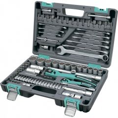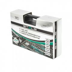 Набор инструментов Stels 14117 состоит из 82 предметов и включает инструменты и насадки для работы с резьбовыми крепежами, в том числе 12-гранные торцевые головки, облегчающие работу в труднодоступных местах. Комплект упакован в кейс из ударопрочного жесткого пластика, с металлическими застежками, удобный для хранения и перевозки. Набор предназначен для ремонта автомобилей в гараже или автосервисе, пригодится также дома, на даче или в поездке.