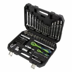 Набор инструментов Сибртех 13529, 1/2 и 1/4 дюйма, упакован в пластиковый кейс и состоит из 89 предметов из стали CrV-группы, предназначенных для монтажа и демонтажа резьбовых крепежей с разными типами шлицев. В комплект входят карданы, удлинители и шарнирные ключи, облегчающие работу в труднодоступных местах. Набор используется для ремонта автомобилей, а также полезен в быту.