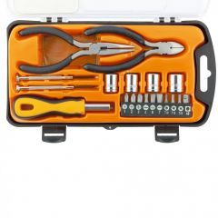 Набор Sparta 13546, 19 предметов, пригодится при выполнении слесарно-монтажных работ. Он будет полезен в хозяйстве для частных мастеров. В наборе есть отвертки для точных работ, отвертка для бит, биты и торцевые головки для монтажа/демонтажа крепежных элементов, бокорезы и длинногубцы для захвата, удержания и перекусывания проводов и мелких деталей.