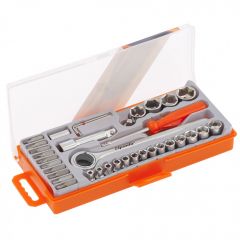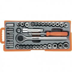 Набор Sparta 13541 содержит 37 предметов для проведения слесарно-монтажных работ. Он оптимально подходит для бытового применения, будет полезен начинающим мастерам. С помощью набора осуществляется монтаж/демонтаж резьбового крепежа.