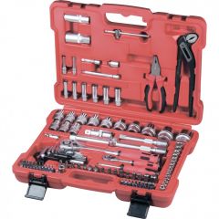 Слесарно-монтажный набор Matrix 13587 с квадратами 1/4, 1/2 и 5/16 дюйма состоит из 117 предметов и используется для монтажа и демонтажа резьбовых соединений. Включает карданные шарниры, упрощающие работу с труднодоступными крепежами, а также пассатижи и переставные клещи для удержания деталей. Набор будет полезен в авторемонтной мастерской, пригодится также и в быту.