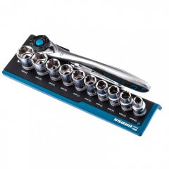 Набор Gross 14138 включает в себя 12 предметов из стали CrV-группы с посадочным квадратом 1/2 дюйма: 10 торцевых головок, трещотку со 120 зубьями и удлинитель 100 мм. Он применяется для монтажа и демонтажа резьбовых соединений при проведении технического обслуживания авто или для бытовых ремонтных работ. Набор подходит не только для самостоятельного использования в гараже и дома, но и для профессиональной эксплуатации на станциях техобслуживания.