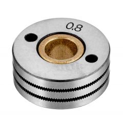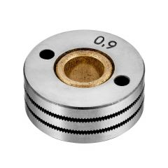Это сменный элемент подающего механизма, который подбирается в соответствии с видом сварочной проволоки и ее диаметром. Данные ролики предназначены для работы с порошковой проволокой диаметром 0,8–0,9 мм. Размер роликов 30х10х12 мм. Подающие ролики имеют канавки K-образной формы. При изменении сечения проволоки необходимо перевернуть ролик нужной стороной и использовать его далее.