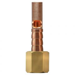 Штуцер устанавливается на водяной шланг аргонодуговой горелки TIG, после чего подключается к блоку охлаждения или сварочному аппарату. Резьба накидной гайки М12x1. Соединение под шланг 9 мм.