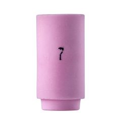Также, керамическое сопло по своему назначению призвано поглощать тепло от вольфрамового электрода, которое образуется во время сварочного процесса. Чем больше выходной диаметр сопла, тем больше (шире) защита сварочного шва. Большие диаметры, как правило, применяются при сварке толстых металлов, а также, металла со скосом кромок. Малые диаметры применяются при сварке тонких металлов и сварке встык или внахлест. Подходит для горелок серии 9/20/25.