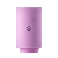 Также, керамическое сопло по своему назначению призвано поглощать тепло от вольфрамового электрода, которое образуется во время сварочного процесса. Чем больше выходной диаметр сопла, тем больше (шире) защита сварочного шва. Большие диаметры, как правило, применяются при сварке толстых металлов, а также, металла со скосом кромок. Малые диаметры применяются при сварке тонких металлов и сварке встык или внахлест. Подходит для горелок серии 9/20/25.