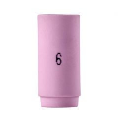 Также, керамическое сопло по своему назначению призвано поглощать тепло от вольфрамового электрода, которое образуется во время сварочного процесса. Чем больше выходной диаметр сопла, тем больше (шире) защита сварочного шва. Большие диаметры, как правило, применяются при сварке толстых металлов, а также, металла со скосом кромок. Малые диаметры применяются при сварке тонких металлов, и сварке встык или внахлест. Подходит для горелок серии 9/20/25.