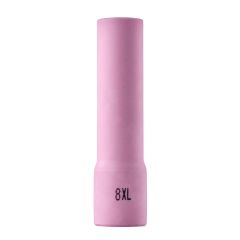 Также, керамическое сопло по своему назначению призвано поглощать тепло от вольфрамового электрода, которое образуется во время сварочного процесса. Удлиненные сопла подходят для сварки в труднодоступных местах, а также, угловых соединений.  Чем больше выходной диаметр сопла, тем больше (шире) защита сварочного шва. Большие диаметры, как правило, применяются при сварке толстых металлов, а также, металла со скосом кромок. Малые диаметры применяются при сварке тонких металлов и сварке встык или внахлест.  Подходит для горелок серии 9/20/25. Сопло совместимо только с держателем цанги для газовой линзы.
