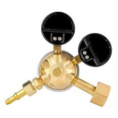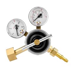 Регулятор расхода газа У-30/АР-40-4 с манометром высокого давления, который отображает показания давления в баллоне, и манометром-расходомером для настройки расхода углекислого газа или аргона предназначен для понижения давления газа и автоматического поддержания постоянным заданного расхода при питании постов и установок в среде защитных газов. Красная шкала — расход в л/мин для Аргона (Ar). Черная шкала — расход в л/мин для Углекислоты (CO2). Корпус регулятора изготовлен из латуни. Регулятор можно использовать в цеховом производстве интенсивной эксплуатации и на открытом воздухе.
