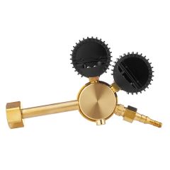 Регулятор расхода газа У-30/АР-40-КР-300 предназначен для понижения давления газа и автоматического поддержания постоянным заданного расхода при питании постов и установок в среде защитных газов. Оснащен манометром высокого давления, который отображает показания давления в баллоне, и манометром-расходомером для настройки расхода углекислого газа или аргона. Красная шкала — расход в л/мин для Аргона (Ar). Черная шкала — расход в л/мин для Углекислоты (CO2). Регулятор У-30/АР-40-КР-300 устанавливается на баллоны с давлением до 30 МПа (300 кгс/см2). Корпус регулятора изготовлен из латуни. Товар можно использовать в цеховом производстве интенсивной эксплуатации и на открытом воздухе. Манометры дополнительно защищены резиновыми кожухами, которые предохраняют устройство от механических повреждений.