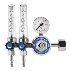 Регулятор расхода газа У-30/АР-40-01-2Р предназначен для понижения газа и автоматического поддержания постоянным заданного расхода при питании постов и установок в среде защитных газов. Регулятор обеспечивает тонкую настройку и стабильное поддержание заданного рабочего давления (расхода). Корпус регулятора изготовлен из алюминия (литье под давлением). Корпус спаренных ротаметров изготовлен из силумина - сплав алюминия с кремнием. Колбы ротаметров изготовлены из прочного пластика, которые имеют две шкалы Ar/CO2.