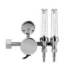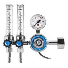 Регулятор расхода газа с подогревателем У-30/АР-40-П-01-2Р (36V) предназначен для понижения газа и автоматического поддержания постоянным заданного расхода при питании постов и установок в среде защитных газов. Регулятор обеспечивает тонкую настройку и стабильное поддержание заданного рабочего давления (расхода). В корпус регулятора встроен подогреватель на 36В. Электроподогреватель обеспечивает работоспособность регулятора при низких температурах окружающей среды (до -30°С). Корпус регулятора изготовлен из алюминия (литье под давлением). Корпус спаренных ротаметров изготовлен из силумина - сплав алюминия с кремнием. Колбы ротаметров изготовлены из прочного пластика, которые имеют две шкалы Ar/CO2.