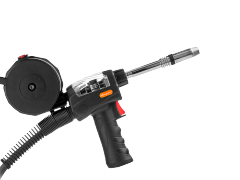 Сварочная горелка Spool Gun SSG 24 для полуавтоматической сварки имеет встроенный механизм подачи сварочной проволоки и предназначена для полуавтоматической сварки в среде защитных газов, углеродистой, нержавеющей, алюминиевой и порошковой самозащитой сварочной проволокой. Сварочная горелка позволяет работать на удалении от аппарата, производить сварку в труднодоступных местах со сложным пространственным положением сварного шва. Благодаря конструктивным особенностям отсутствует эффект смятия сварочной проволоки в механизме подачи. Конструктивные особенности: тормозное устройство катушки с проволокой регулируемое усилие зажатия проволоки прочный металлический механизм подачи проволоки прозрачные части отсека с проволокой и механизма подачи съемный гусак горелки с резьбовым соединением удобная рукоятка стальная петля для подвешивания горелки.